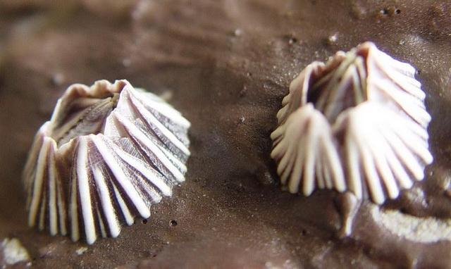 普通藤壶有坚硬的钙质圆锥形外壳,靠过滤水中的浮游生物为生。幼年期随波逐流,成年后固定在一个地方就不动了。